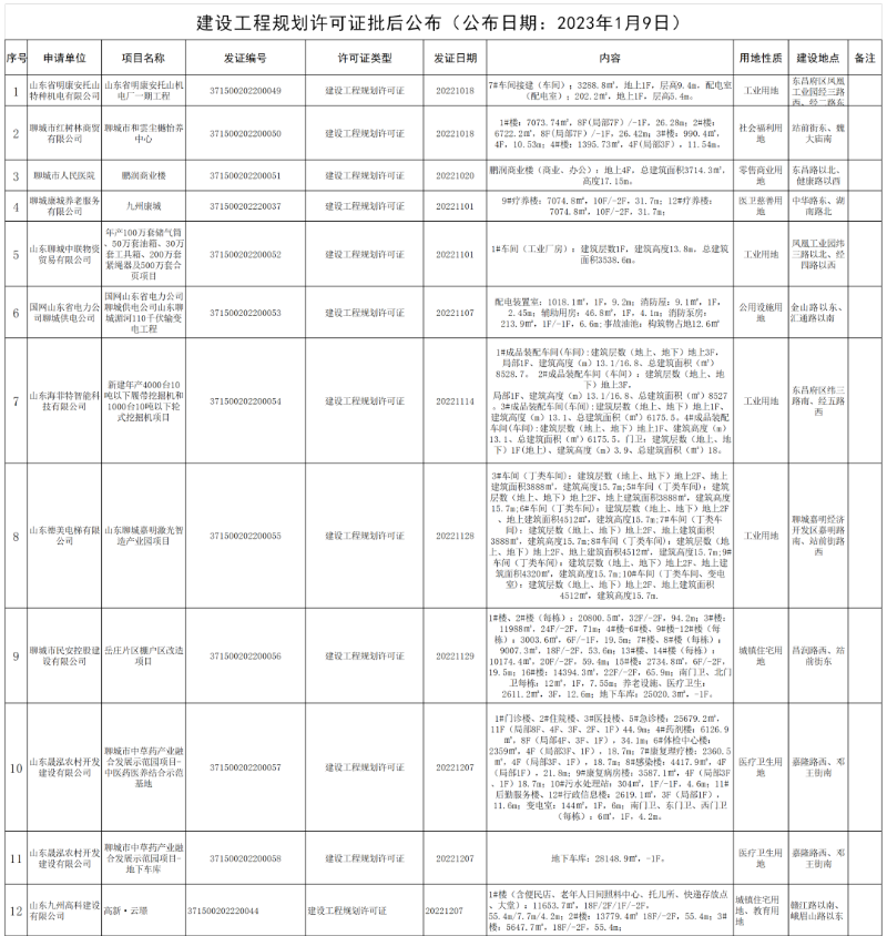 建设工程规划许可证批后公布(公布日期:2023年1月9日)
