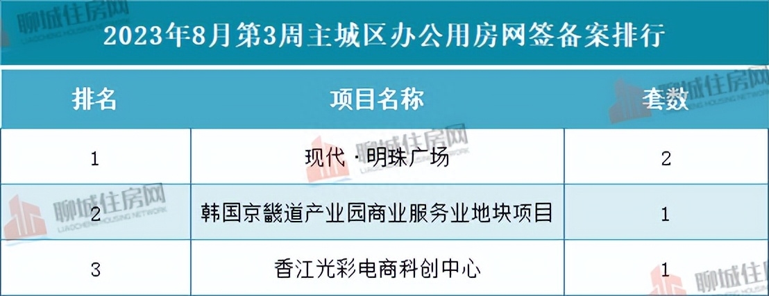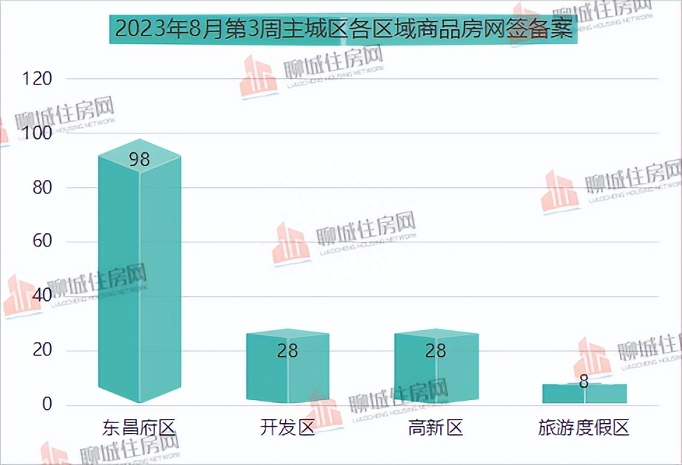 从区域网签数据来看,网签量最多的为东昌府区,98套,其中住宅用房网签34套,商业用房3套,办公1套,其他60套;开发区、高新区并列第二,各28套,其中开发区住宅用房10套,商业用房1套,其他17套;高新区办公用房1套,其他27套;第三名为旅游度假区,共8套,其中住宅用房3套,办公用房2套,其他3套;