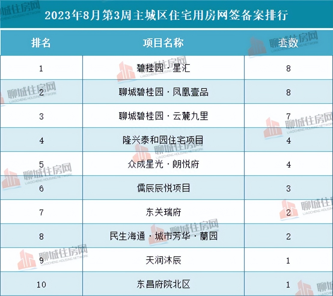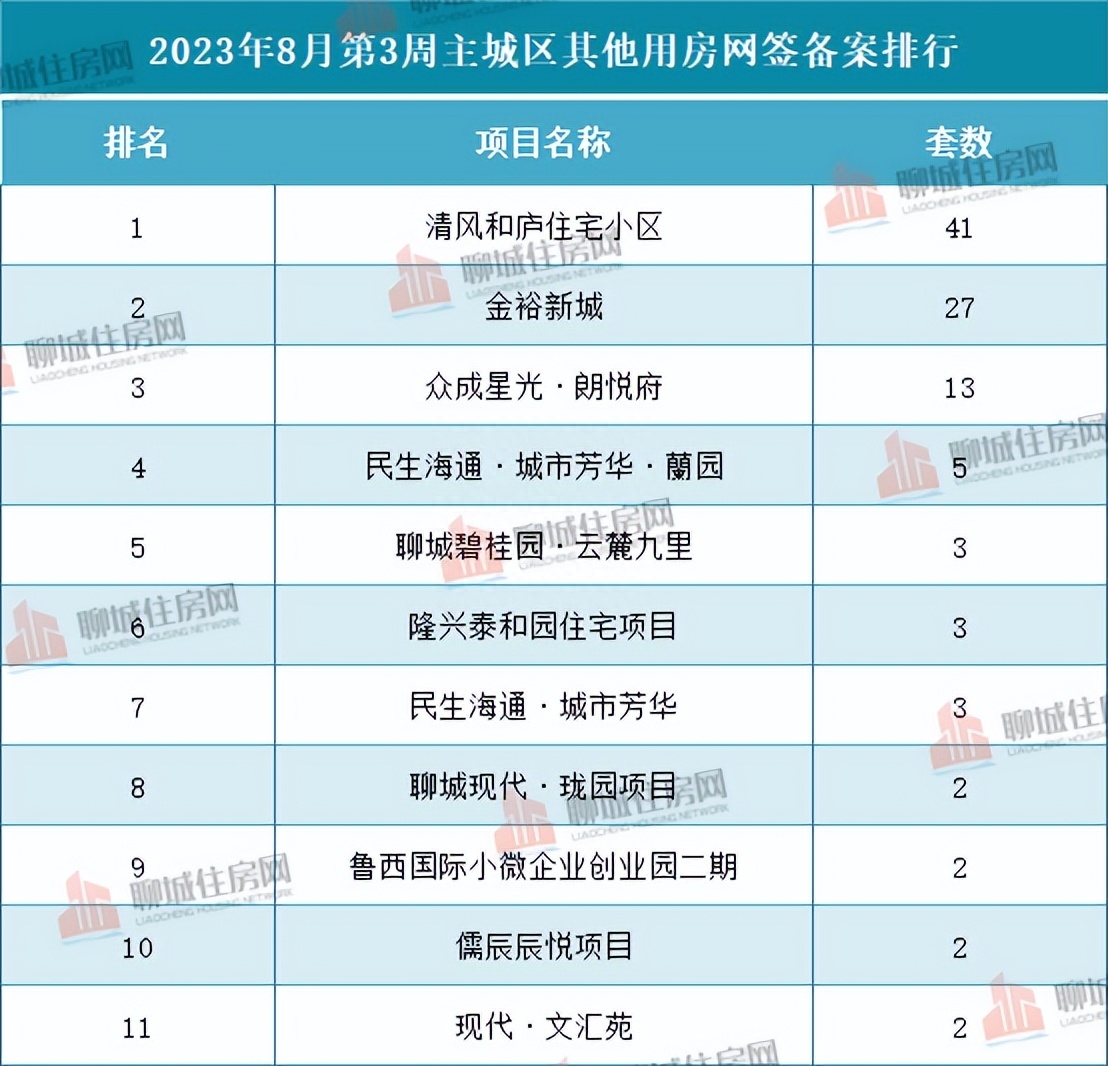 住宅用房方面,网签备案项目共17个。数量最多的为碧桂园·星汇和聊城碧桂园·凤凰壹品并列第一,各8套;其次为聊城碧桂园·云麓九里,网签备案套数为7套;隆兴泰和园住宅项目和众成星光·朗悦府,网签备案4套并列第三。