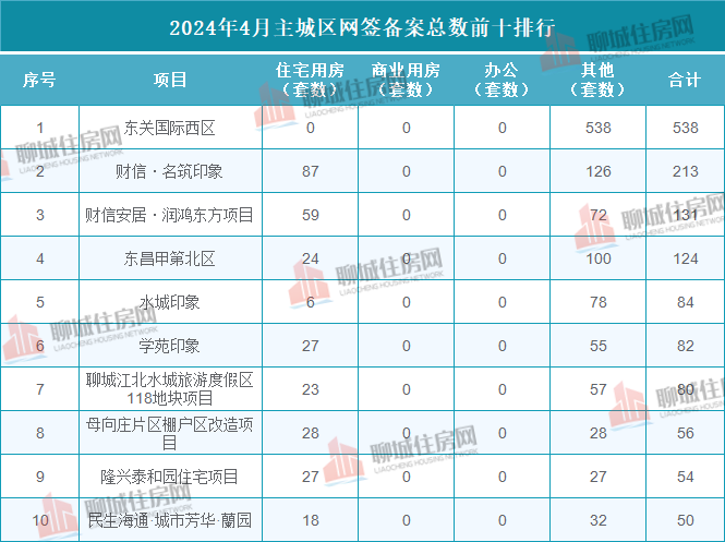 聊城主城区2024年4月份商品房网签备案数据汇总