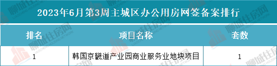 办公用房方面,共有1个项目进行网签备案。韩国京畿道产业园商业服务业地块项目网签备案套数为1套。