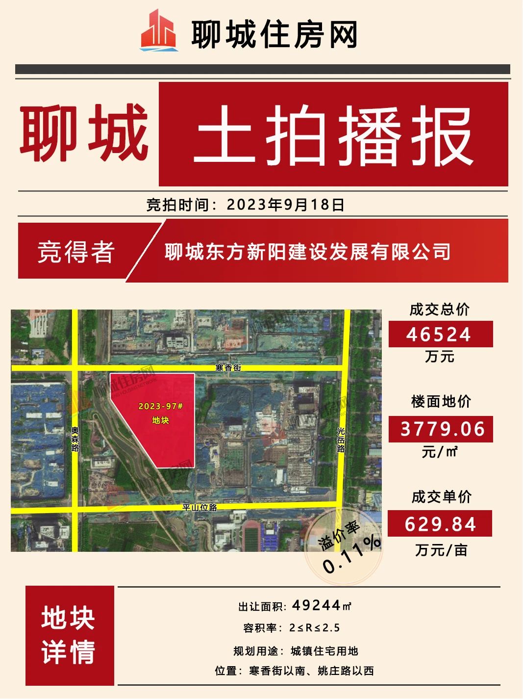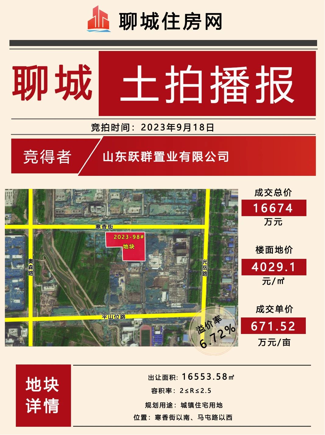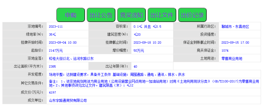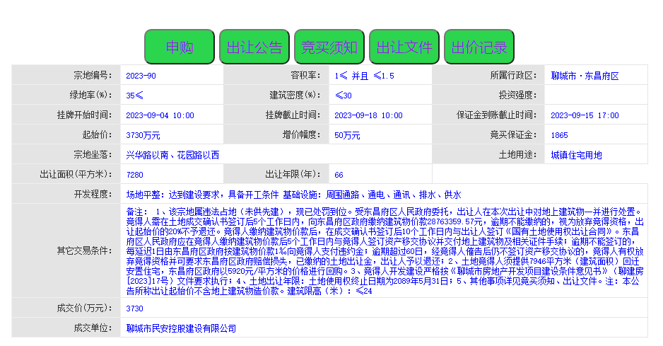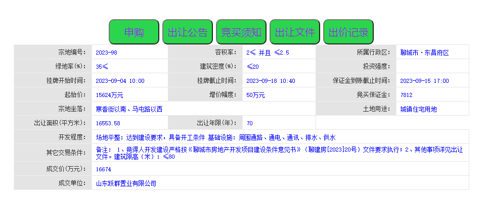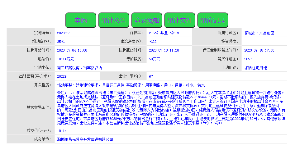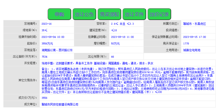 9月18日,聊城城区前期出让的10宗城镇住宅地块和1宗零售商业地块、1宗其他商服用地、1宗工业用地在官方网站进行集中竞拍,13宗地块均竞拍成功!