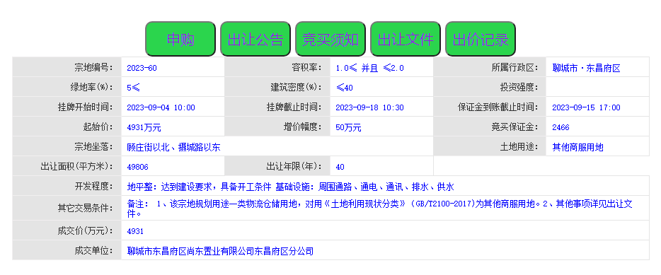 拿地房企:聊城市东昌府区尚东置业有限公司东昌府区分公司